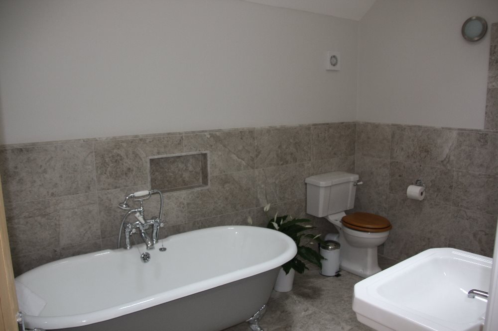 The wetroom is a stunning mix of traditional furniture and features and modern luxury. Encased in natural marble stone you will find a double-ended cast iron bath, large shower area and features such as recessed lighting and a de-mister mirror. High quality toiletries are provided, as are all of the basics, such as a heated towel rail, wc, basin and shaver point.